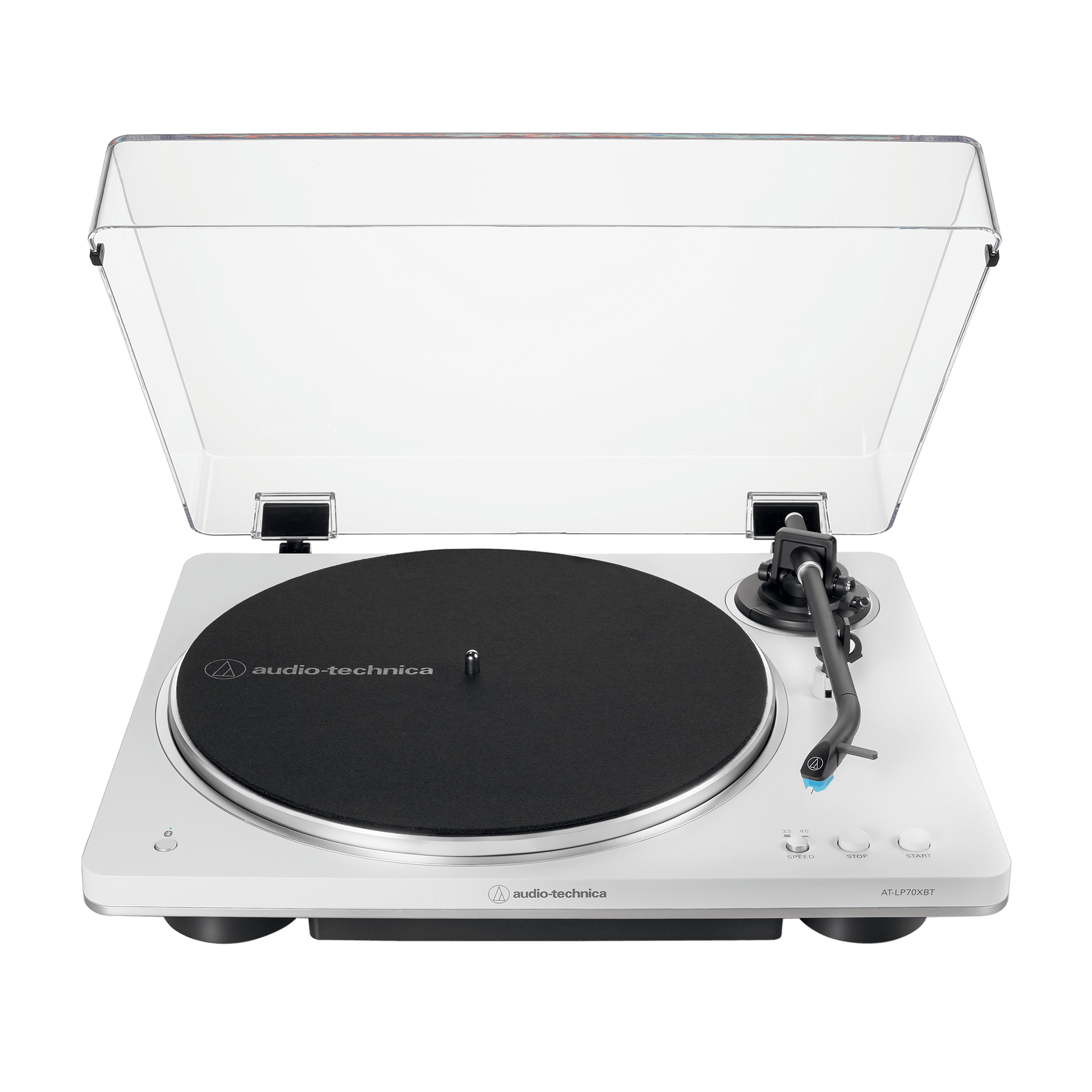 El AT-LP70XBT ofrece reproducción automática a 33⅓ y 45 RPM, con solo pulsar un botón. Su brazo en forma de J, equipado con la cápsula AT-VM95C Integral Dual Moving Magnet™, elimina la necesidad de ajustes o equilibrado, asegurando una experiencia fluida desde el primer uso.